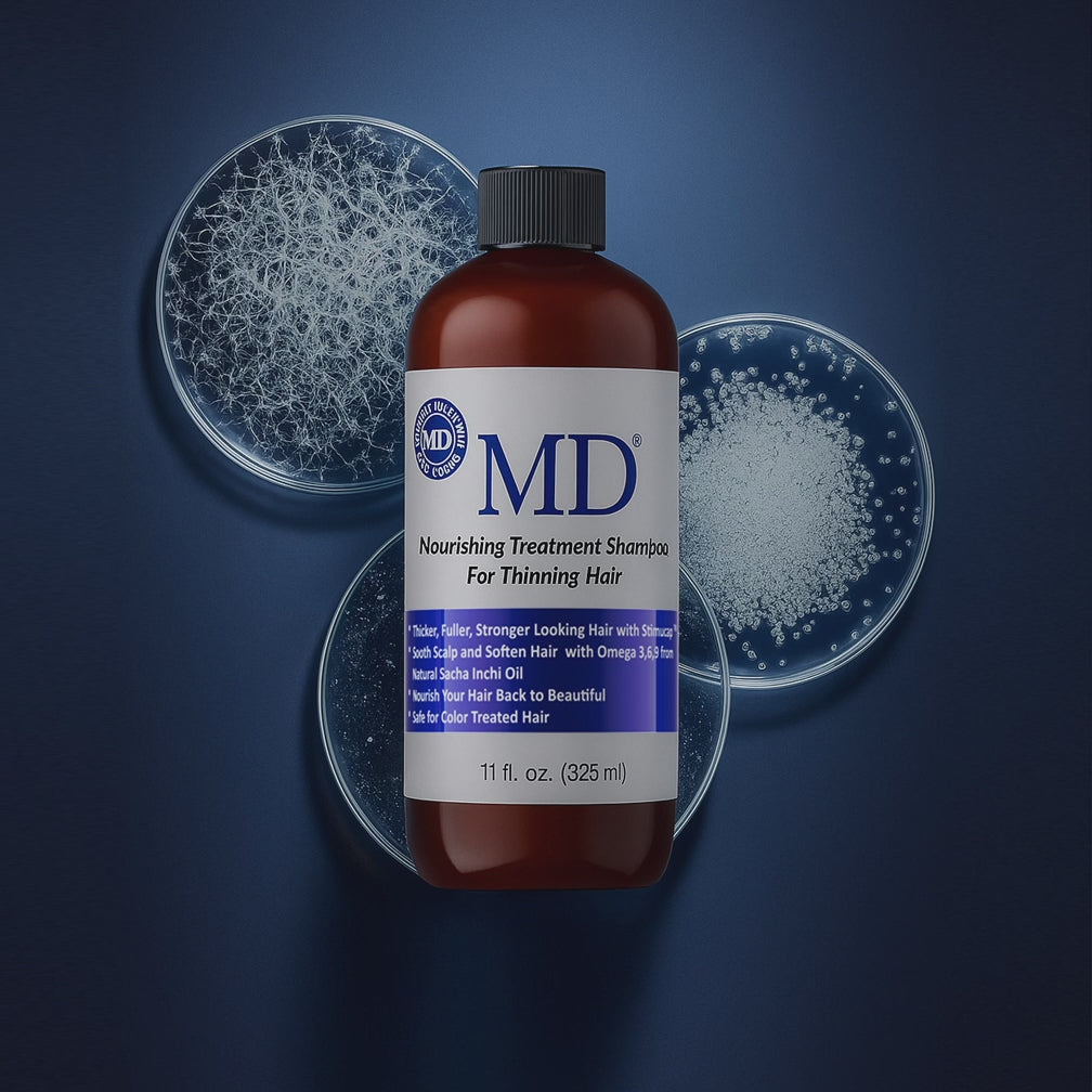 Experience healthier, fuller-looking hair with MD Revitalizing Treatment Shampoo—a physician-developed, sulfate-free formula designed to target the root causes of hair thinning. Enriched with organic Sacha Inchi, StimuCap peptides, aloe vera, and nourishing botanical extracts, this treatment-grade shampoo gently cleanses while delivering essential nutrients for scalp and hair vitality.